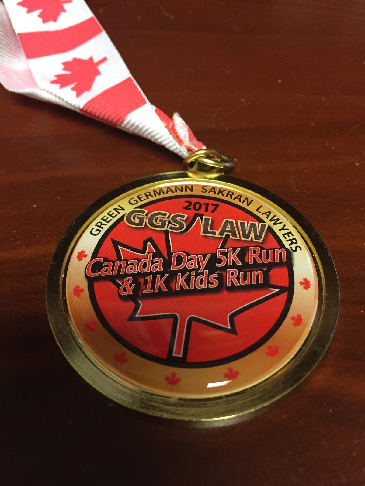 I finally got my Canada Day medal from the Canada Day (July 1) race when they ran out of medals due to all the late registrations. I do love bling :)